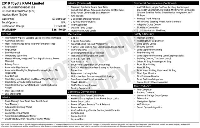 Navigation System, 4-Wheel Disc Brakes, 6 Speakers, ABS brakes, Air Conditioning, Alloy wheels, AM/FM radio: SiriusXM, Apple CarPlay, Auto High-beam Headlights, Auto-dimming Rear-View mirror, Automatic temperature control, Axle Ratio: 3.177, Brake assist, Bumpers: body-color, Delay-off headlights, Driver door bin, Driver vanity mirror, Dual front impact airbags, Dual front side impact airbags, Electronic Stability Control, Emergency communication system: Entune Safety Connect, Exterior Parking Camera Rear, Four wheel independent suspension, Front anti-roll bar, Front Bucket Seats, Front Center Armrest, Front dual zone A/C, Front fog lights, Front reading lights, Fully automatic headlights, Garage door transmitter: HomeLink, Heated door mirrors, Heated Front Bucket Seats, Heated front seats, Illuminated entry, Knee airbag, Leather Shift Knob, Low tire pressure warning, Memory seat, Occupant sensing airbag, Outside temperature display, Overhead airbag, Overhead console, Panic alarm, Passenger door bin, Passenger vanity mirror, Power door mirrors, Power driver seat, Power Liftgate, Power moonroof, Power steering, Power windows, Radio data system, Radio: Entune 3.0 Premium Audio, Rear anti-roll bar, Rear seat center armrest, Rear window defroster, Rear window wiper, Remote keyless entry, Roof rack: rails only, Security system, SofTex Seat Trim, Speed control, Speed-sensing steering, Split folding rear seat, Spoiler, Steering wheel mounted audio controls, Tachometer, Telescoping steering wheel, Tilt steering wheel, Traction control, Trip computer, Turn signal indicator mirrors, Variably intermittent wipers, Wheels: 19" x 7.5J Alloy, Navigation System.